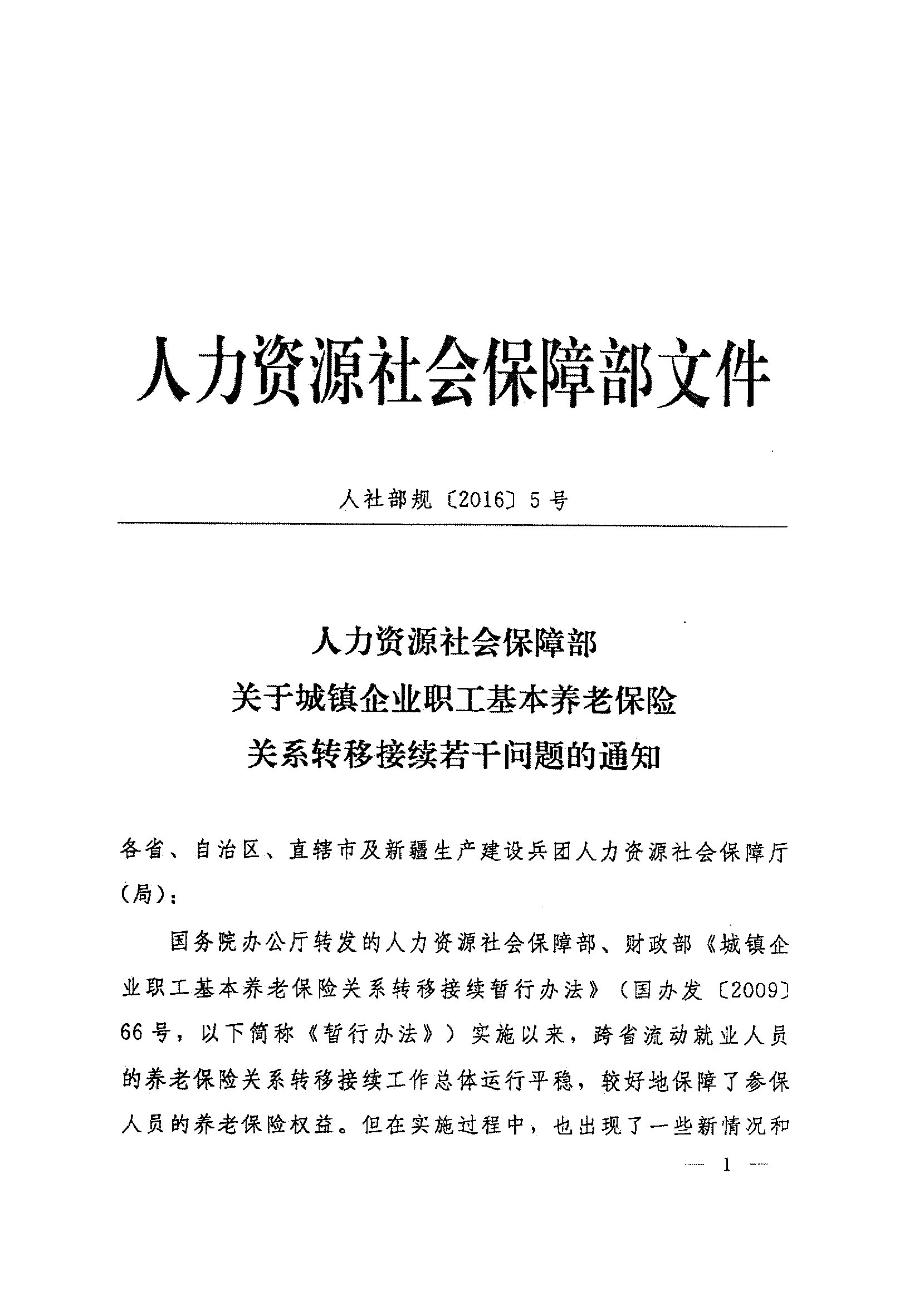 关于转发人力资源社会保障部《关于城镇企业职工基本养老保险关系转移接续若干问题的通知》的通知