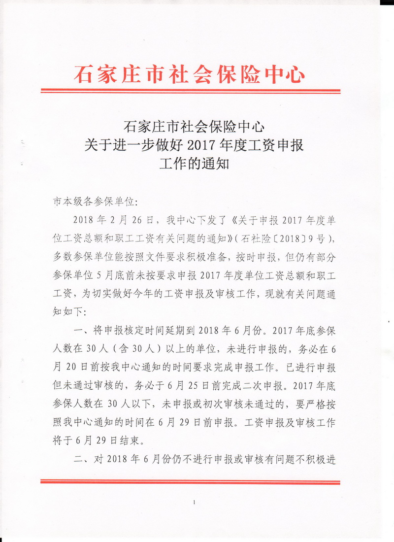 石家庄市社保中心关于进一步做好2017年度工资申报工作的通知
