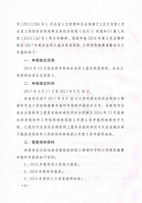 关于申报2016年度工资总额和核定2017年度养老工伤保险缴费基数有关问题的通知